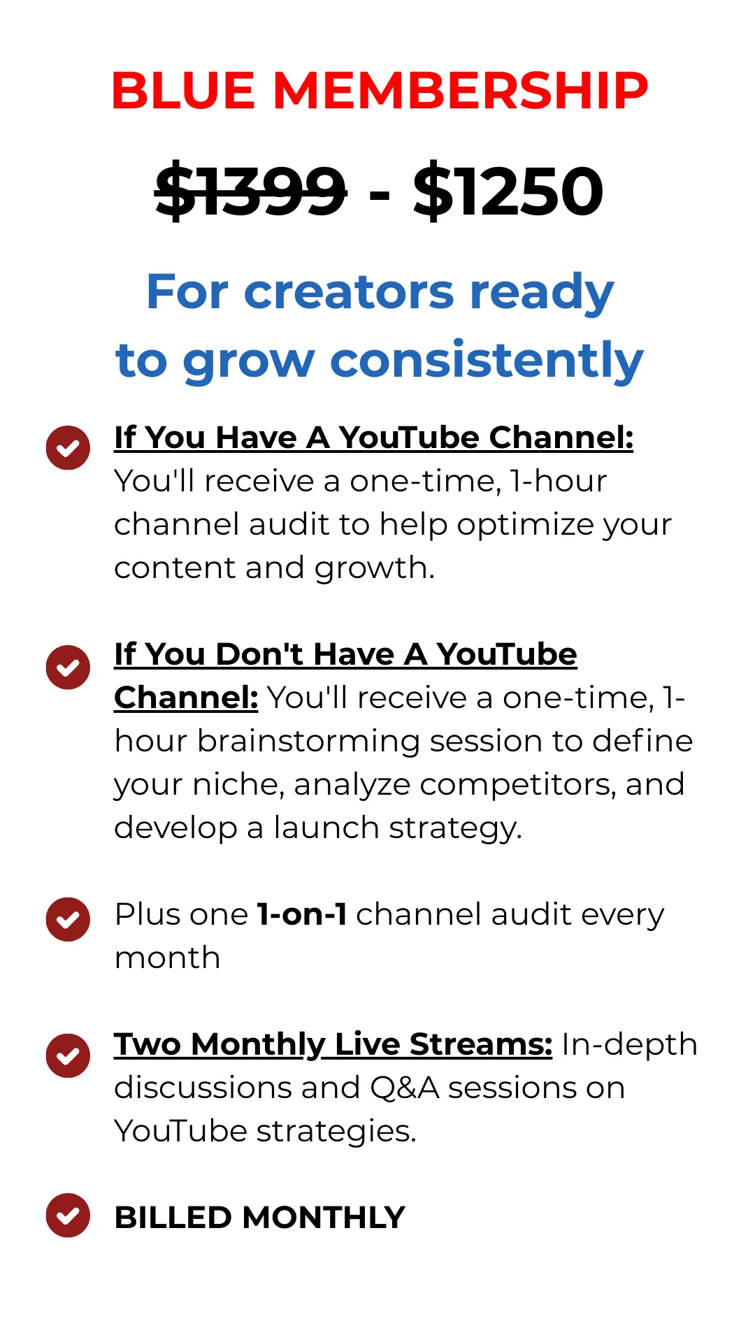 Two Monthly Live Streams: In-depth discussions and Q&A sessions on YouTube strategies.